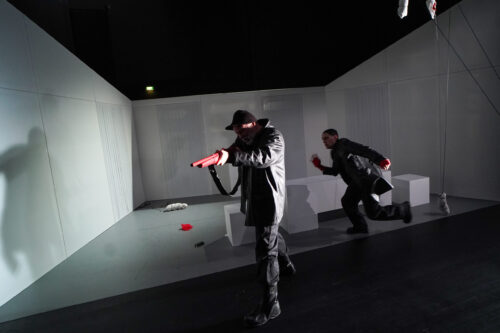 „Die Kieler Inszenierung unter Max Claessens Regie nutzt die Intimität der Studiobühne perfekt aus. Magdalena Hartungs minimalistisches Bühnenbild konzentriert den Fokus vollständig auf die Schauspieler:innen – und das zahlt sich aus. Christian Kämpfer und Isabel Baumert verkörpern das Ehepaar Covey mit einer Authentizität, die das Publikum von der ersten Minute an vereinnahmt. Nicht minder beeindruckend agiert Tristan Taubert als William Bloor. Er meistert den schwierigen Balanceakt zwischen dem kaltblütigen Funktionär und dem Menschen, der selbst Gefangener des Systems ist. Jennifer Böhm komplettiert als Sarah Box ein Ensemble, das nicht nur perfekt aufeinander eingespielt ist,sondern auch die emotionale Bandbreite des Stücks voll ausschöpft. Trotz einzelner Momente absurder Komik, die dem Publikum kurze Atempausen gönnen, gelingt es der Inszenierung durchgehend, eine beklemmende Grundstimmung aufrechtzuerhalten. Diese unheilvolle Atmosphäre macht „Foxfinder“ zu einem intensiven Theatererlebnis, das noch lange nachwirkt. Die Premiere wurde zurecht mit anhaltendem, teilweise stehendem Applaus gewürdigt.“ KIELER LEBEN, Sebastian Schack